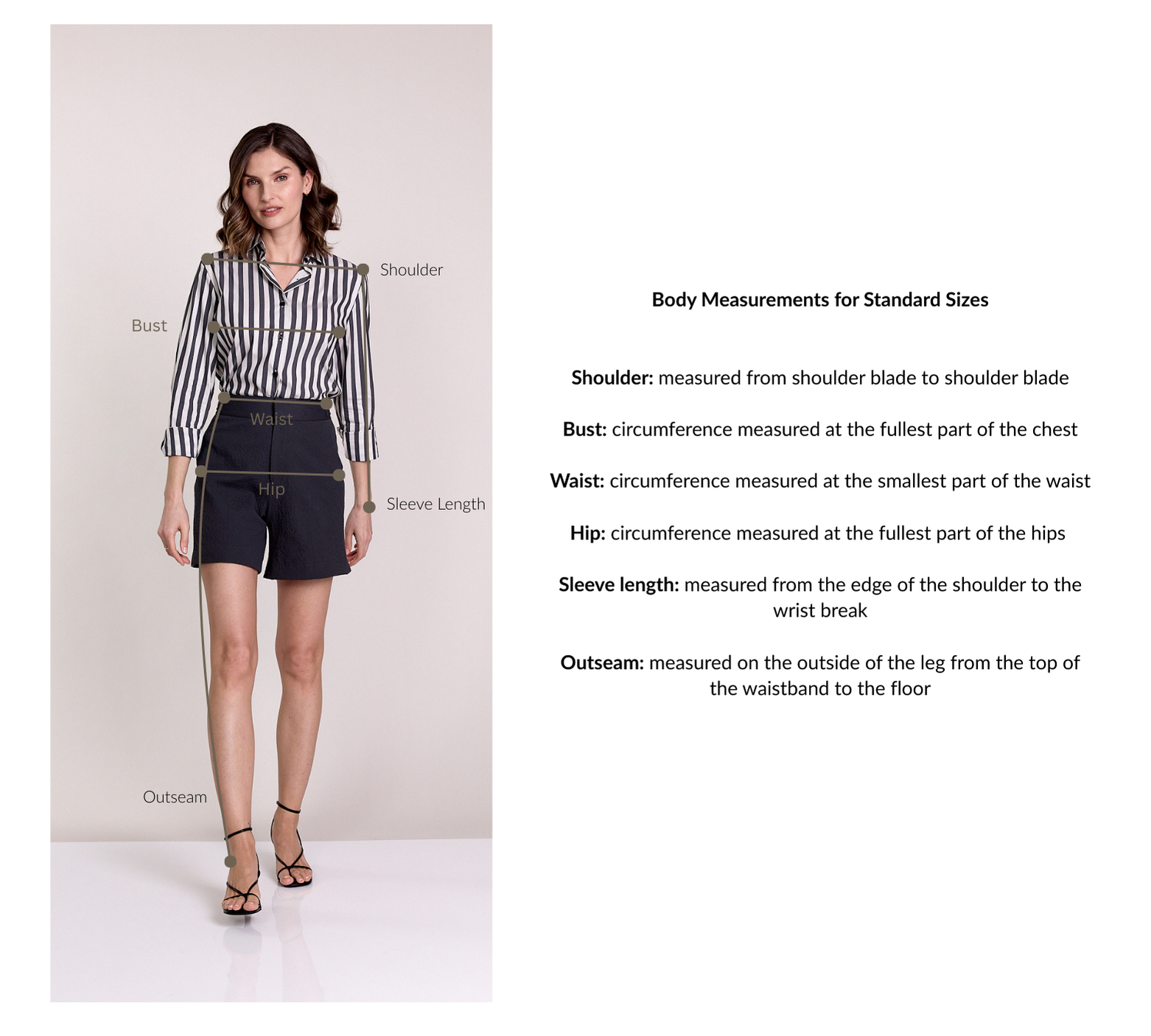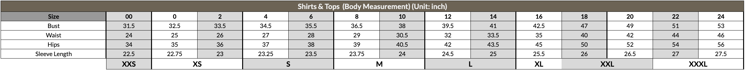 Our size guide is intended to provide general guidance to help you find your best fit. Please note that body shapes vary, and individual fit preferences may differ. For the most accurate results, we recommend submitting your measurements through the Fit App or by visiting one of our locations. ONLIEST™ is not responsible for sizing issues resulting from self-selected standard sizes without custom measurements. If you are interested in a custom fit garment, use 'How It Works' as a guide.